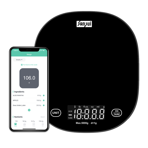 Sansui Smart Kitchen Scale | Bluetooth Enabled with Smart App (5 kg, Black)